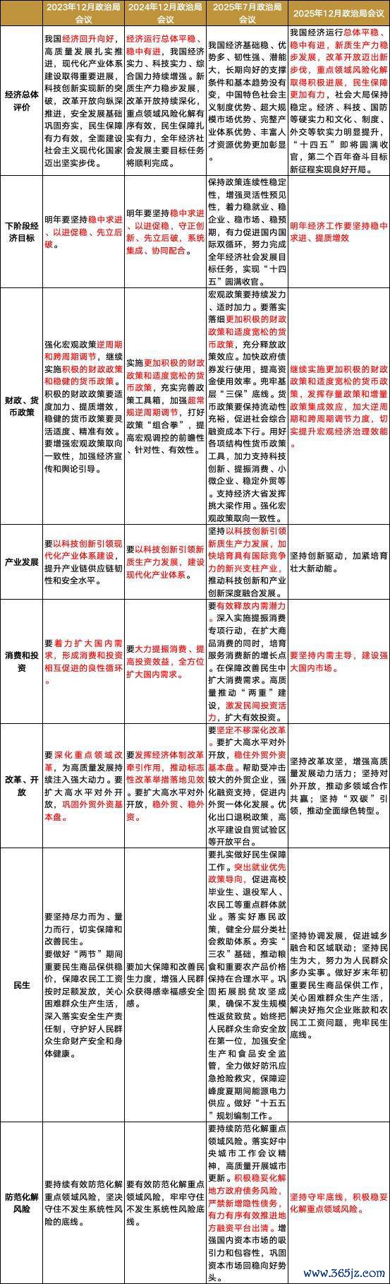 附:2023年、2024年12月,2025年7月以及2025年12月政事局会议实质对比